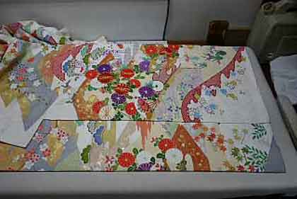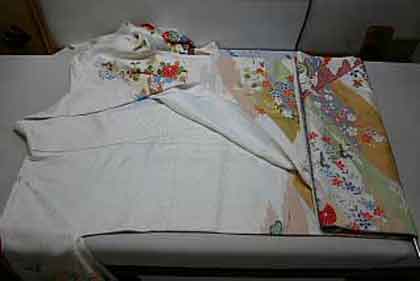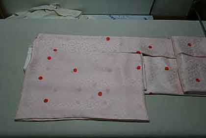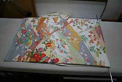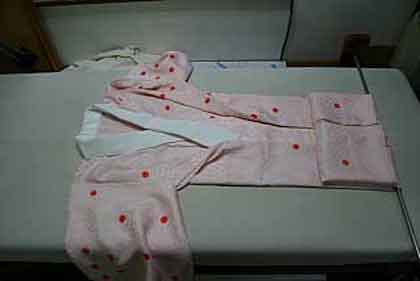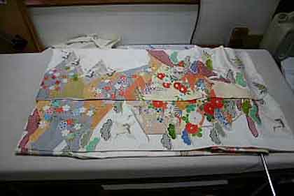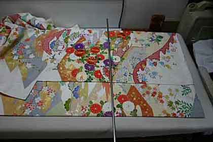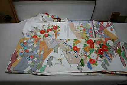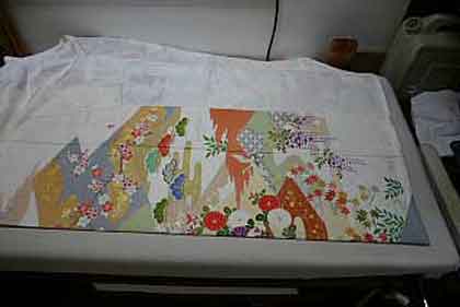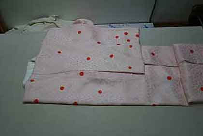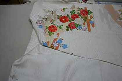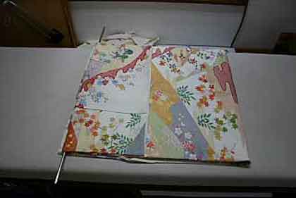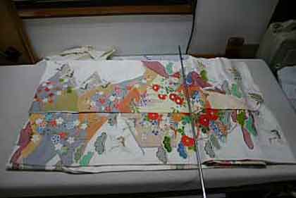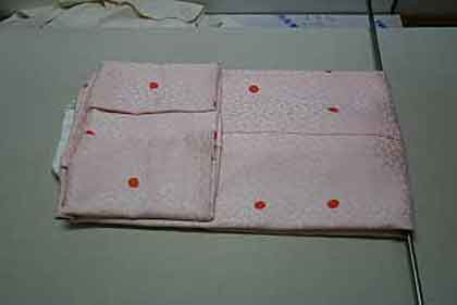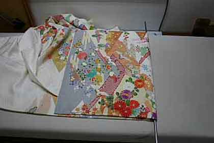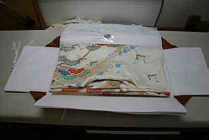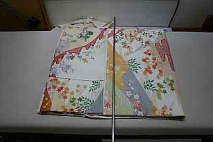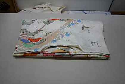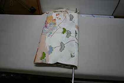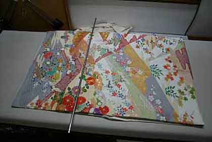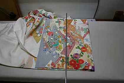 平だたみにたたむ着物は、主に大物の打掛や掛下・振袖等で、中振袖や留袖・色留袖等には模様の間に薄紙を充てた方が望ましく、本だたみより平だたみの方が薄紙が充て易くなります