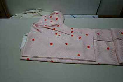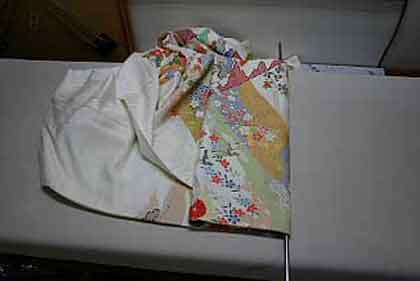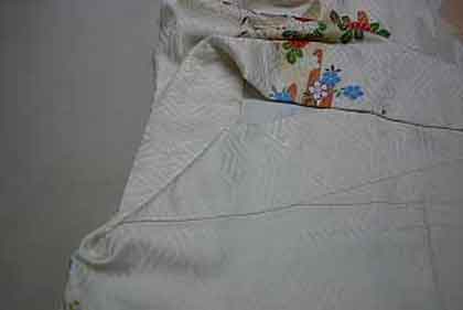 道行コートの場合、ひっくり返して折込部分を裏側にたたみ込む方が見栄えが良くなります。 |