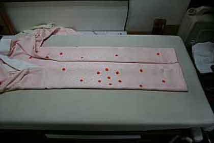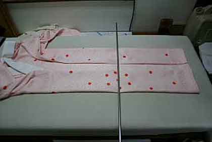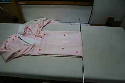 着物の中央に棒を置きます。