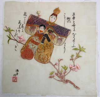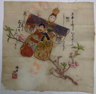 下記の写真は、平成19年現在86歳になる方が女学校時代に刺繍した色紙との事です。戦時中に濡らしてしまい、そのまま現在まで放置していたものだそうです