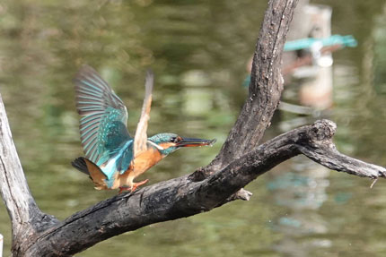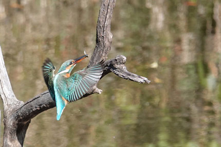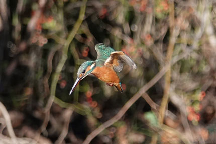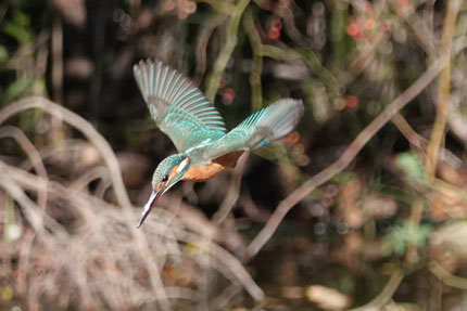 獲物に向かって飛び込む寸前のカワセミです。