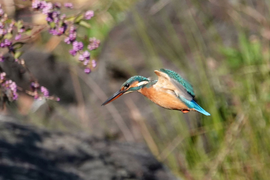 こむらさきのそばに飛んで来たカワセミです。