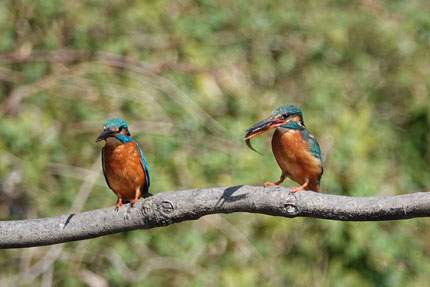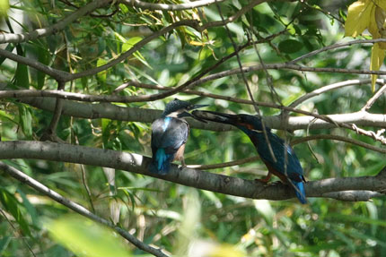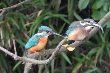(メス)に魚をプレゼントした(オス)のカワセミです。