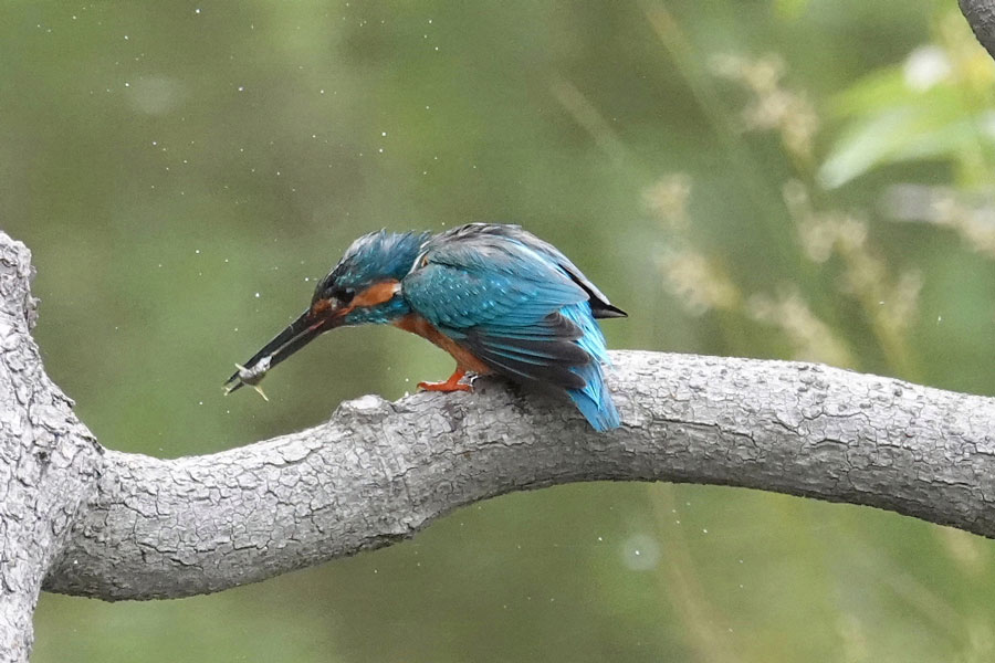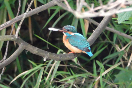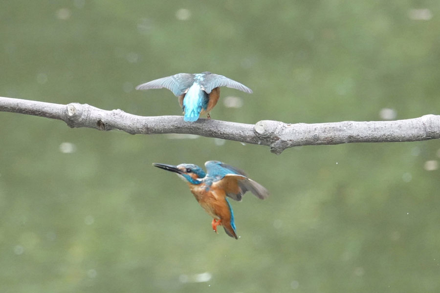 この日の(オス)のカワセミはおおいそがしでした。