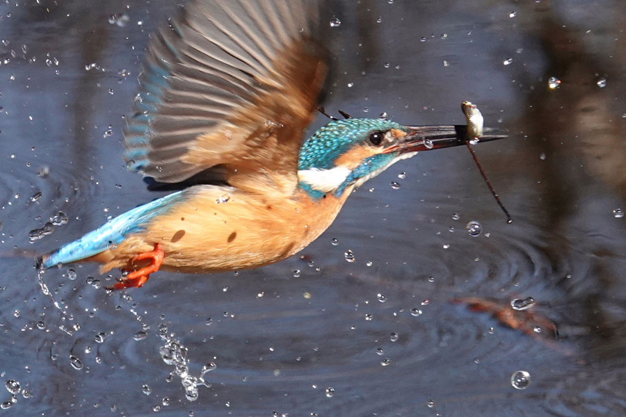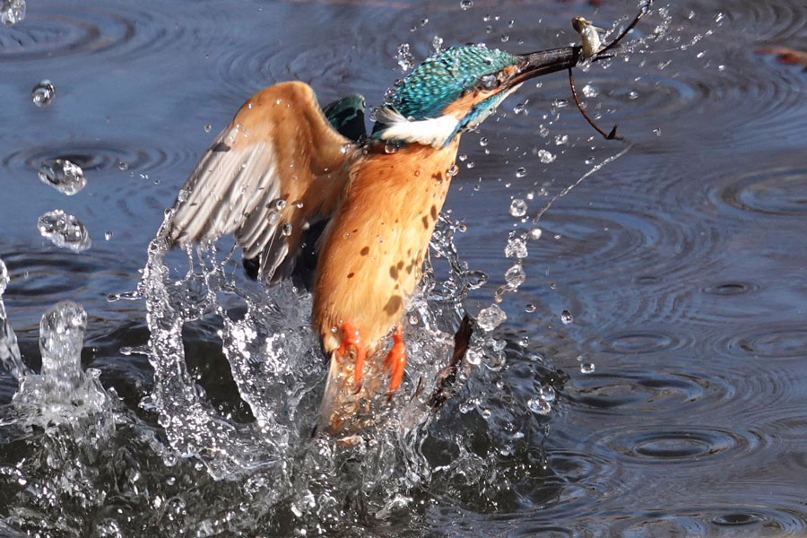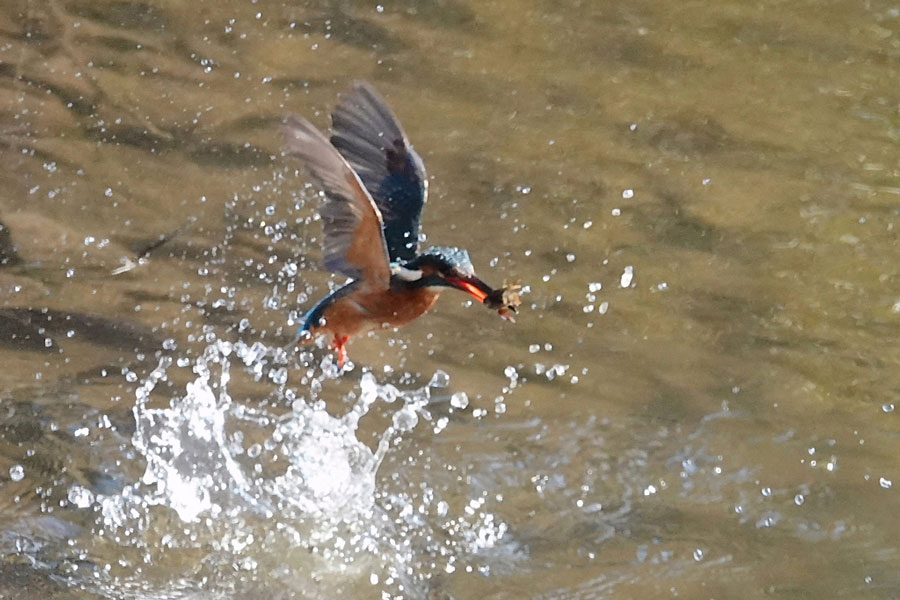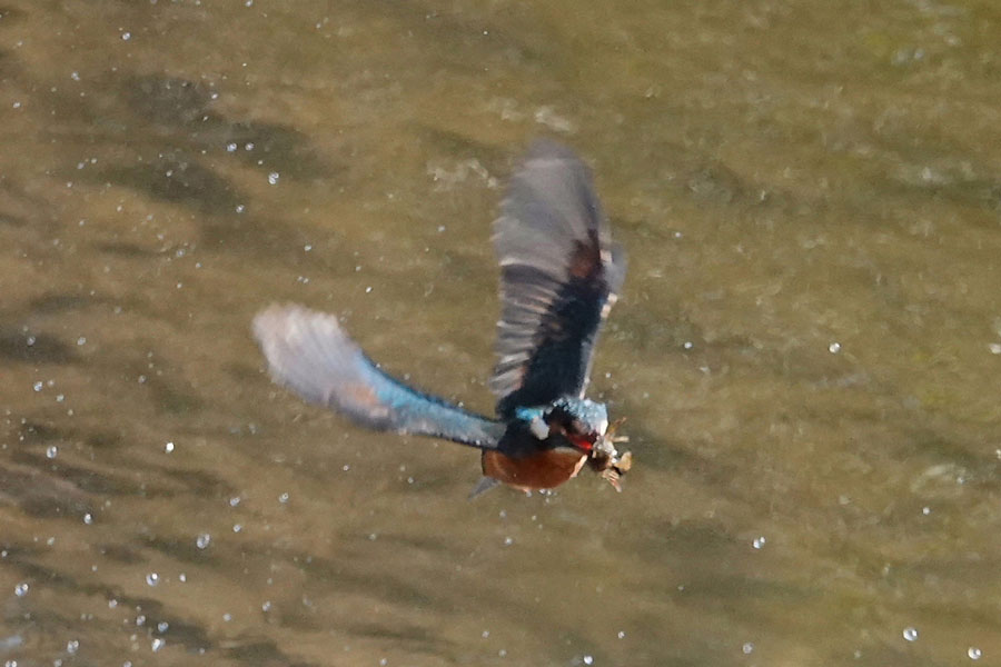 カワセミが飛び込んでザリガニをゲットした瞬間です