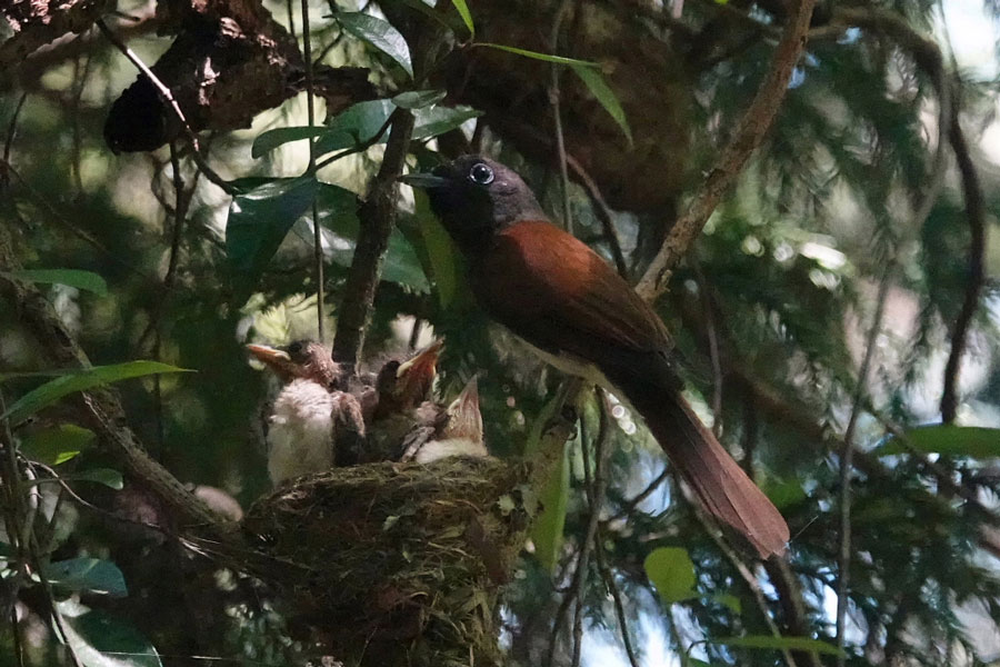 この三光鳥は尾羽が短いので、八月に巣立った子供だと思います。