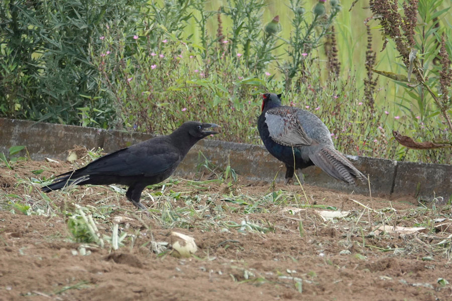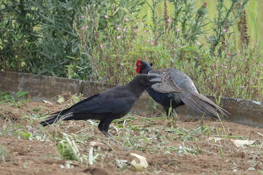 この鳥はカラスとキジが遭遇した瞬間です。 R3.6.27 矢切にて撮影