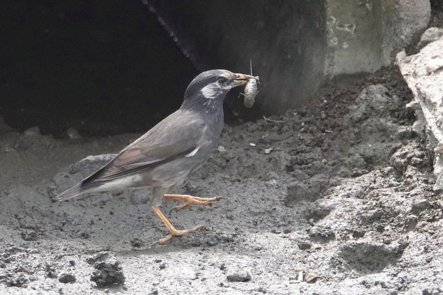 この鳥はムクドリと言う鳥で、水の止まった水路に残されたザリガニをゲットしました。