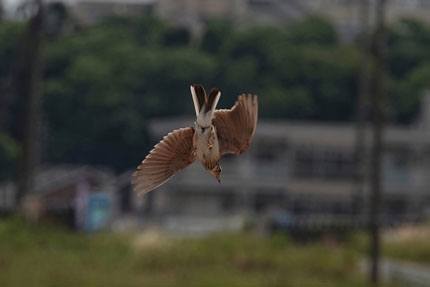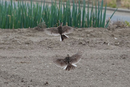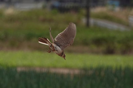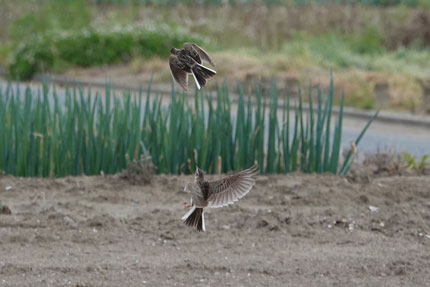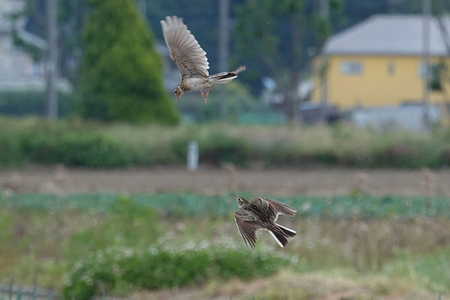 この鳥はヒバリのオスで縄張り争いにかなり興奮しています。 R3.5.31 矢切にて撮影