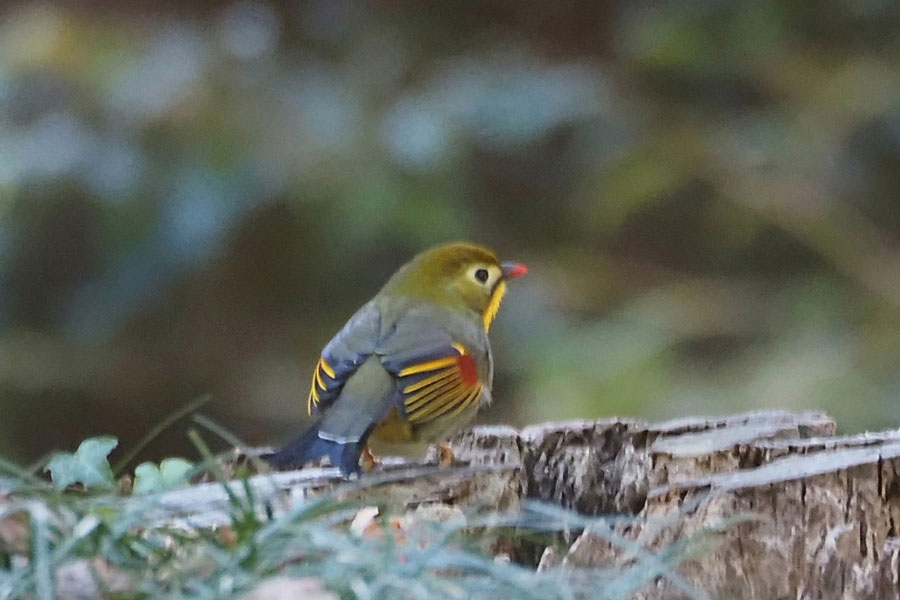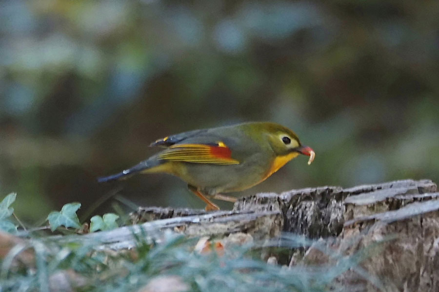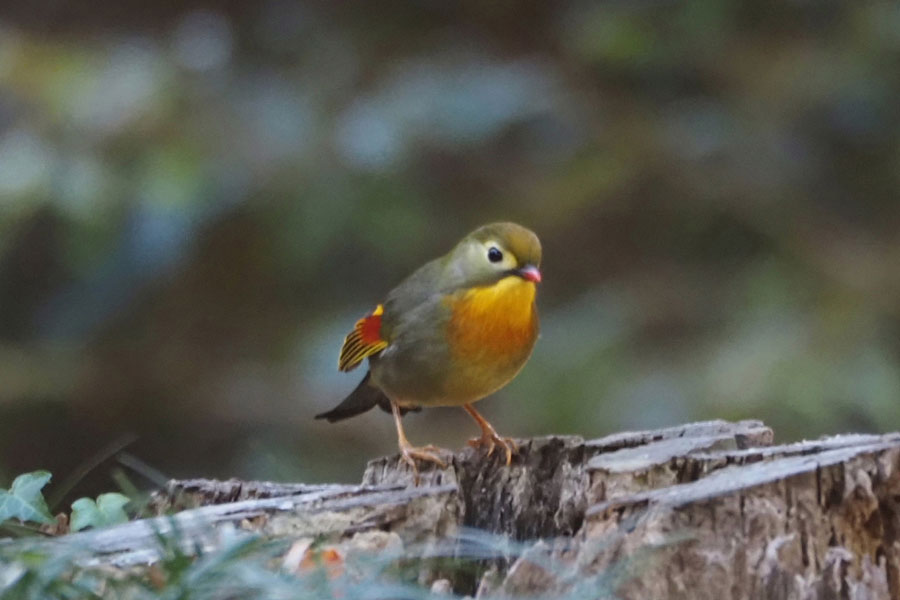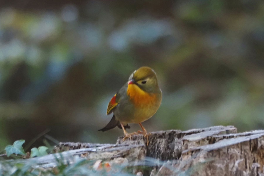 この鳥はソウシチョウと言う鳥で、この周辺では珍しい鳥です。