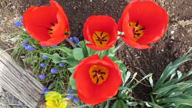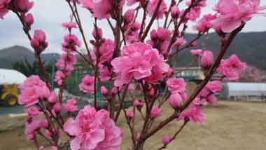 ブルーベリーの里には芝桜や水仙や桃の花が綺麗に咲いていました。