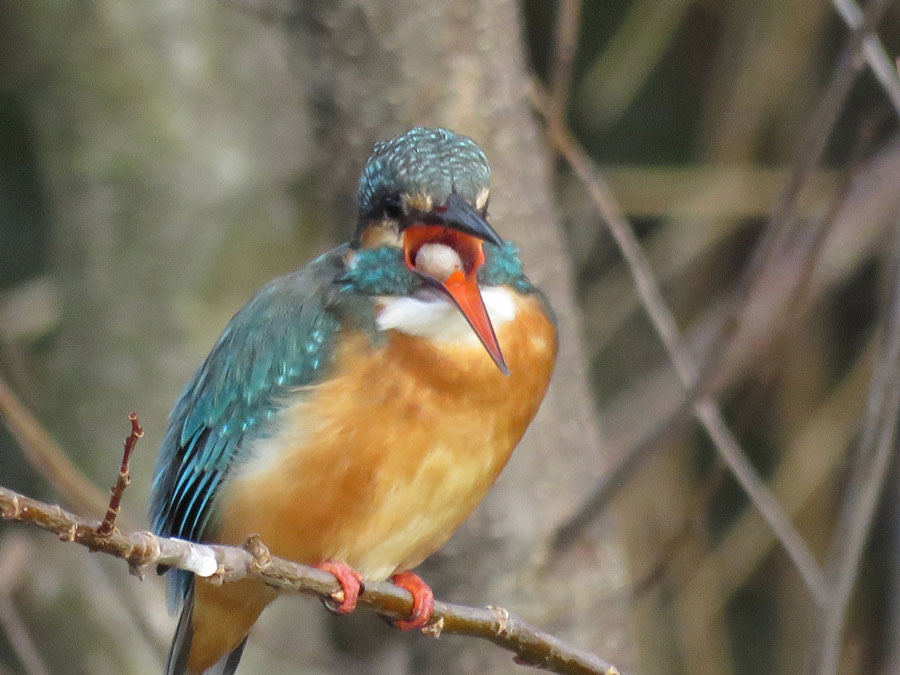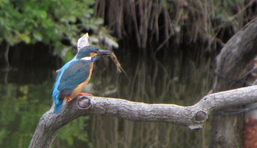 カワセミのお母さんです。くちばしの下が赤いのが特徴です