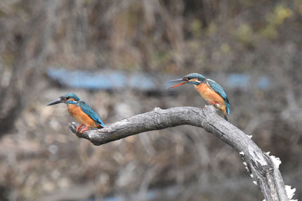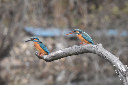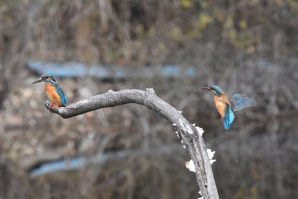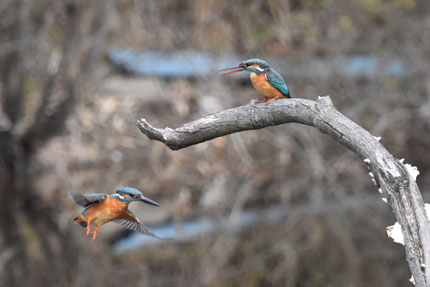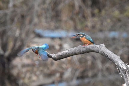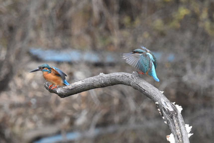 この時期はまだメスのカワセミは、オスを受け入れないので、オスはメスに気をつかいながら、メゲずに暮らしています。