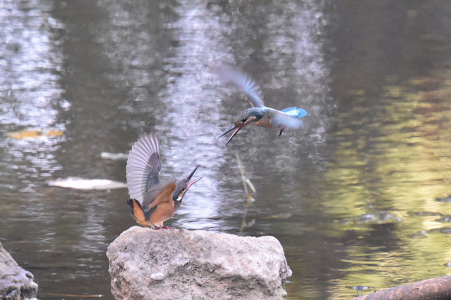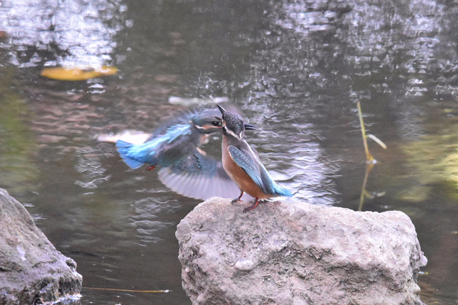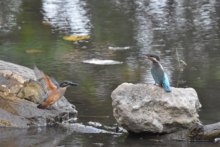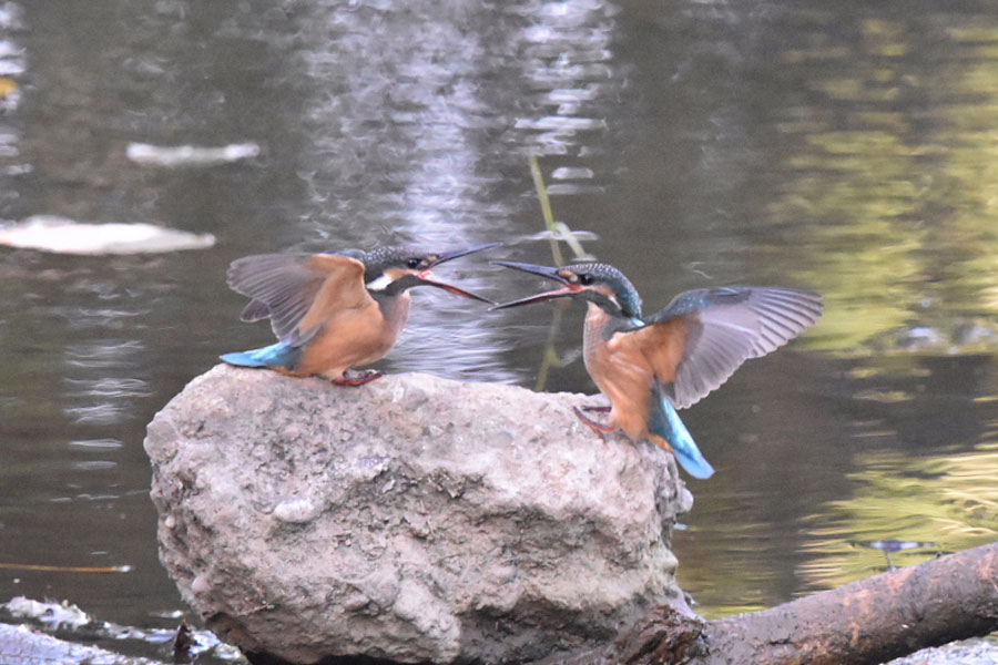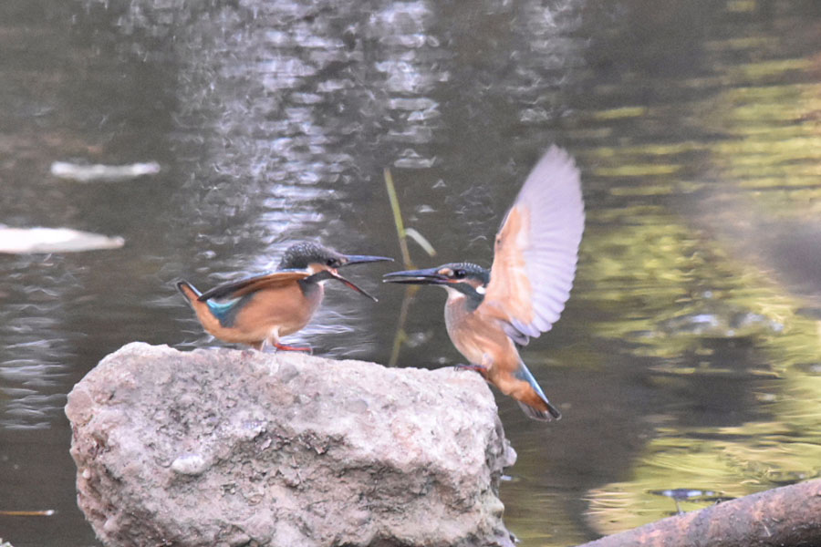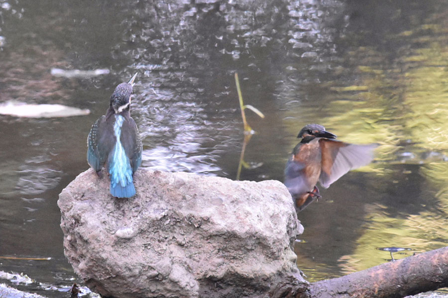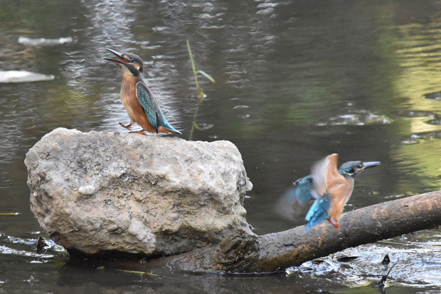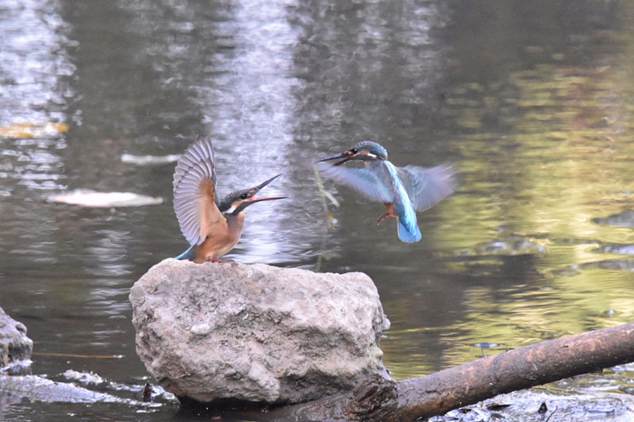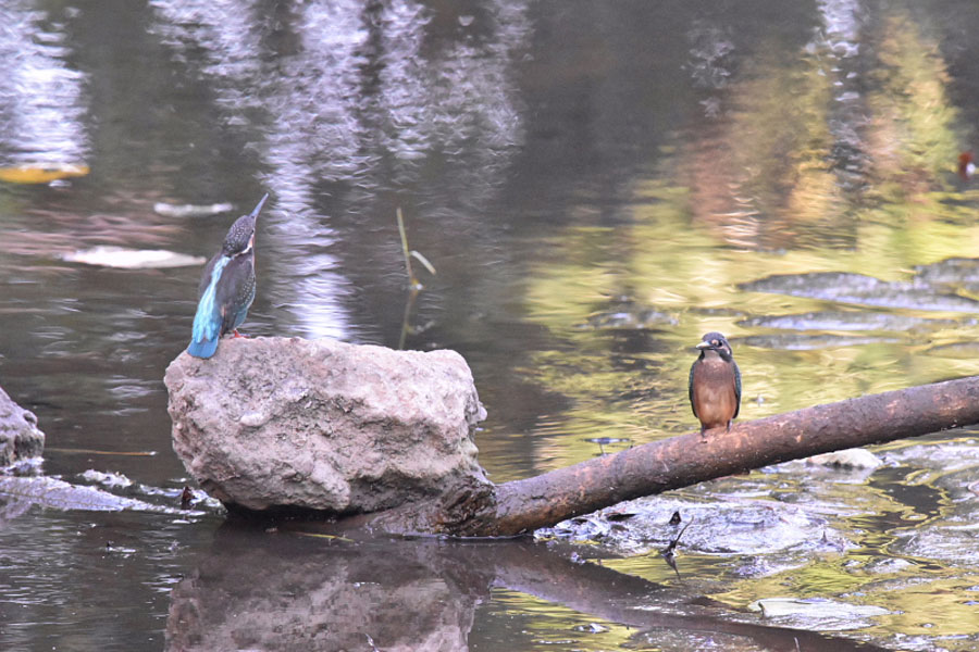 写真左側はメスのカワセミで、右側はオスのカワセミです。