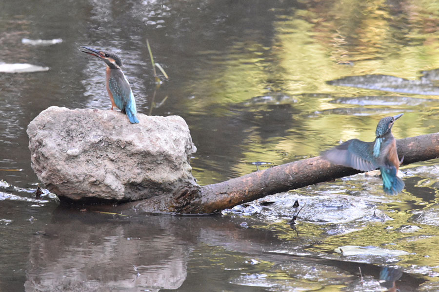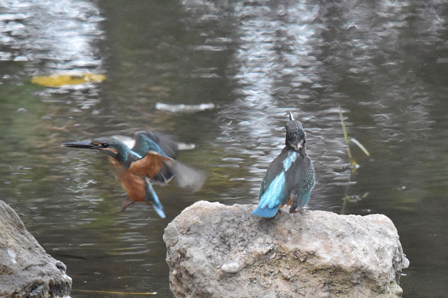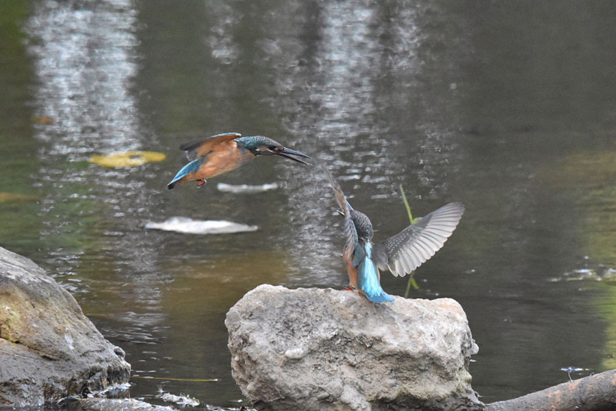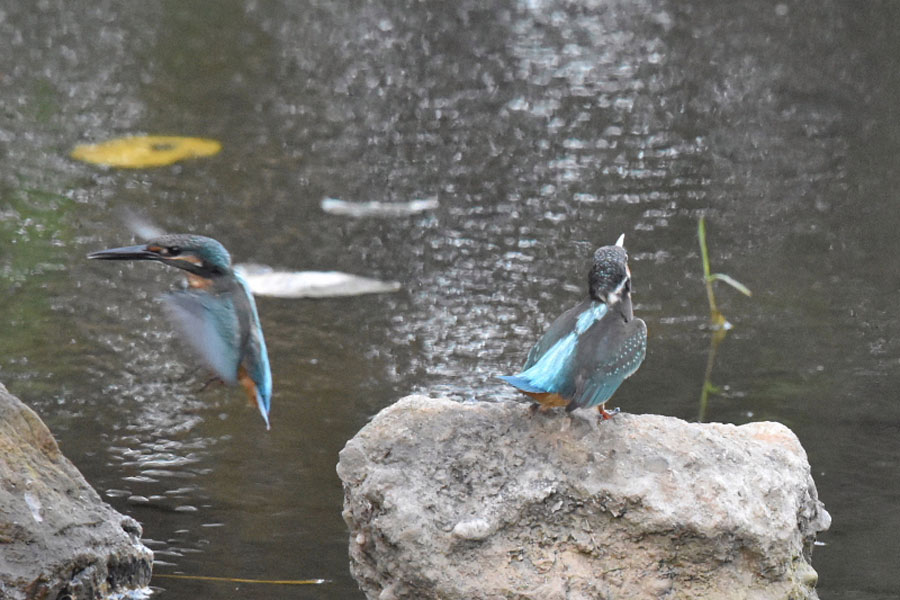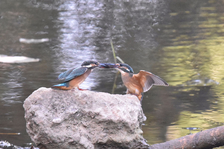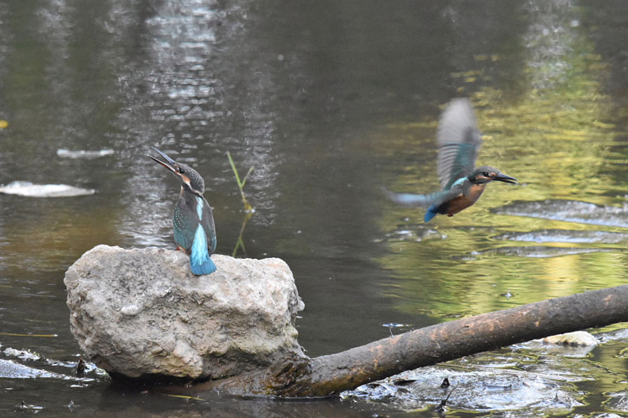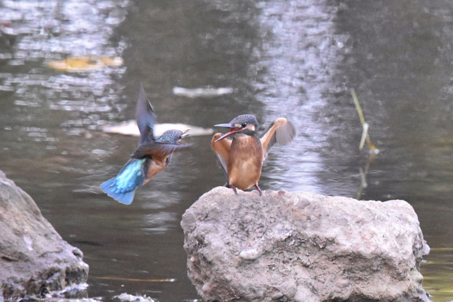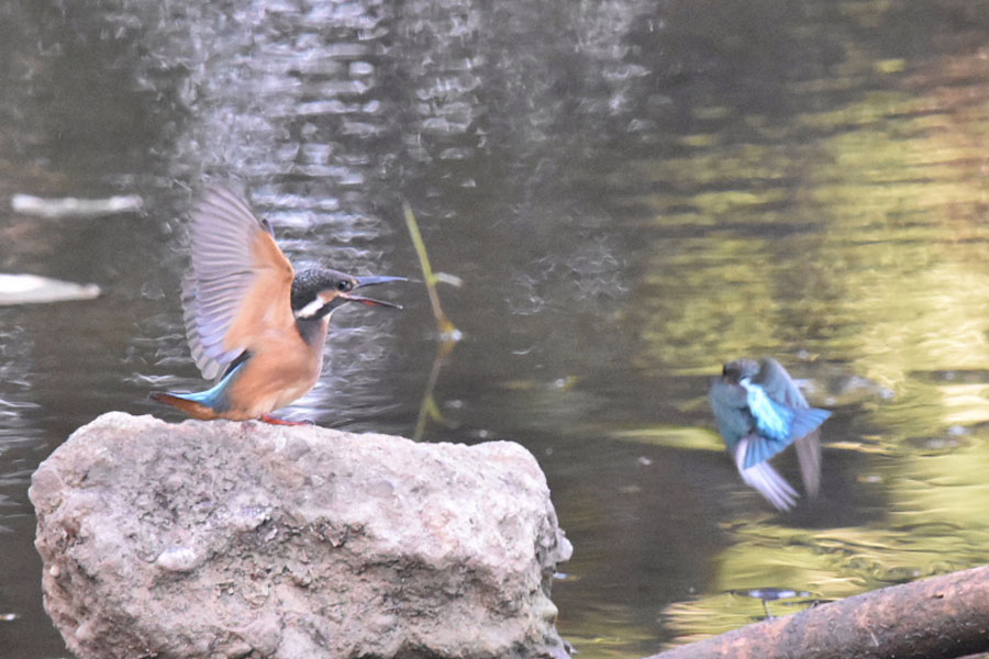 写真左側はメスのカワセミで、右側はオスのカワセミです。