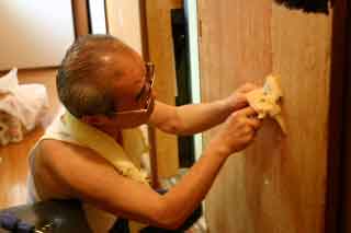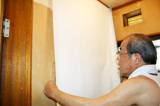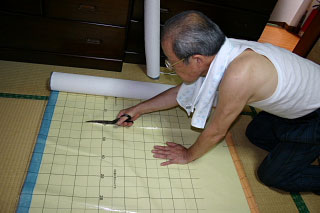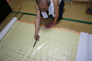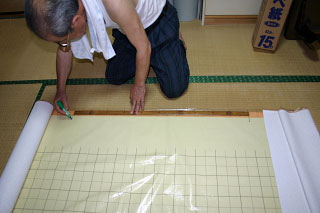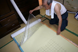 位置が決定した後 専用の刷毛で空気を抜きながら貼り付けて行きます