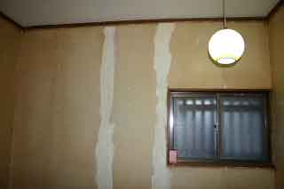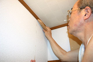 再度壁紙を貼り付け 切り口の線をきちんと貼り合わせます