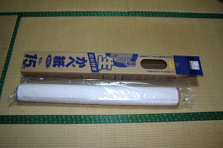 これまでにクロカ張りの経験が全く無く、ホームセンターに出かけ、生糊付きの壁紙を発見しました。