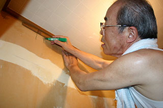 夏休み 今年の夏は異常に暑い日が続いていて何処にも出かける気になれず、室内の壁のクロスを張り替える事にしました。