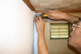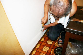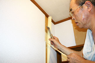 コーナーは特に丁寧に切り取り 壁紙を貼り付けていきます