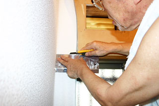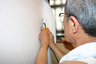 電気のコンセントの位置をカッターで切り抜き コンセントを表に出します