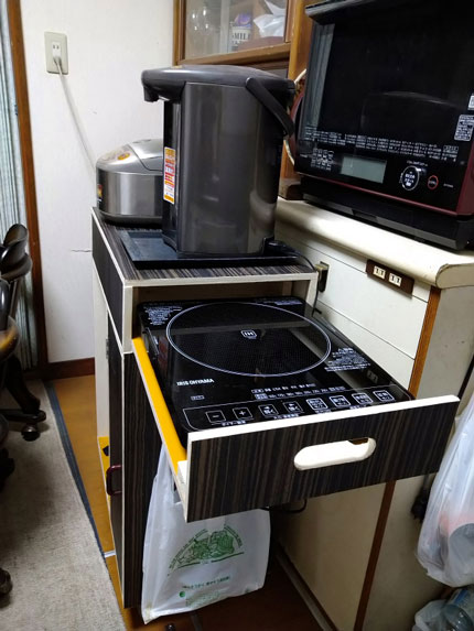 そこで電気釜とポットを置いている台(ワゴン)をつくり