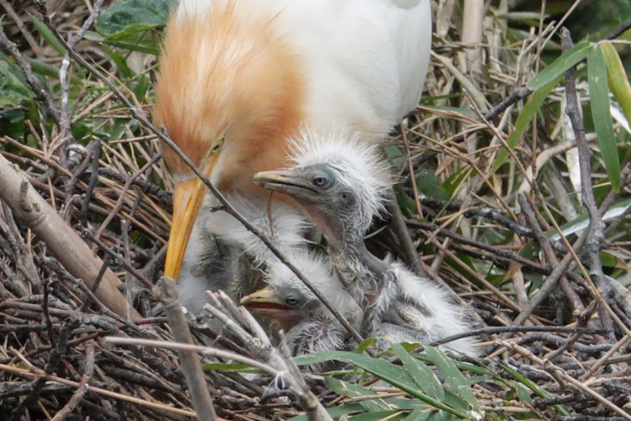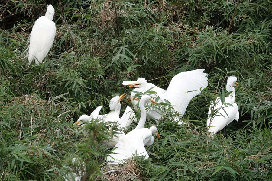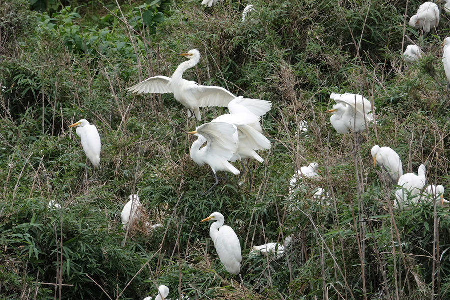 ダイサギ・コサギ・アマサギ・ゴイサギ・アカガラサギ等の集団です。