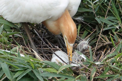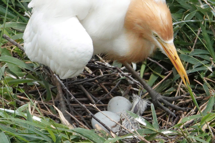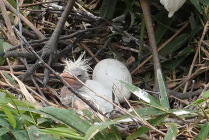 この巣では私が見ている間に10時30分頃卵が割れてヒナが出て来ました。