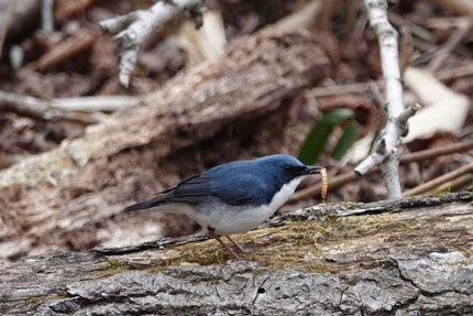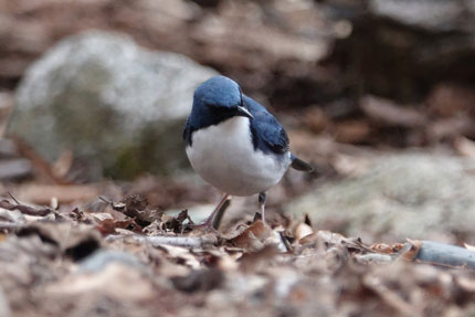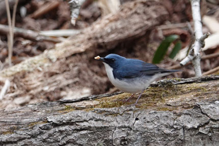 何時もの餌場に午前中のみコマドリが現れ、午後は少し上の方の二か所に良く現れました。コルリは最初から少し上の