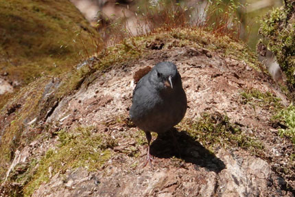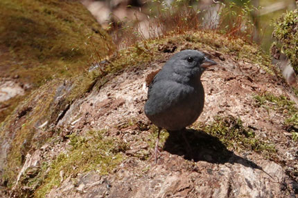 この鳥はコルリと言う鳥です。 コルリが餌場に来てコマドリに見つかると追い払らわれていました。