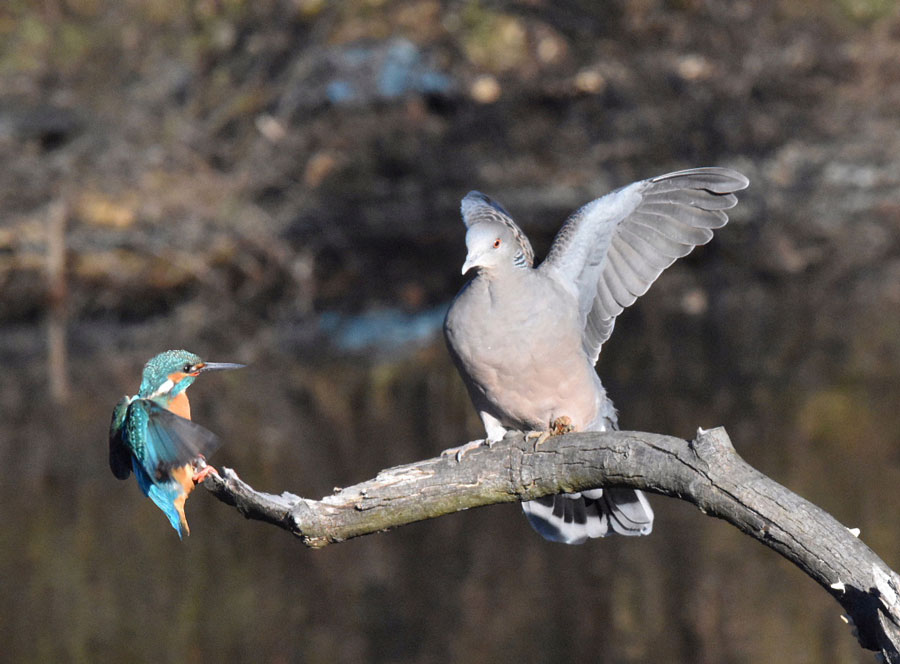 キジバトさんと同じ枝に同時ちゃくしゅしてしまいました。