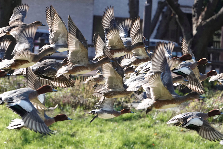 カモの一斉飛び立ちです。 R1.12.3水元公園にて撮影