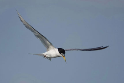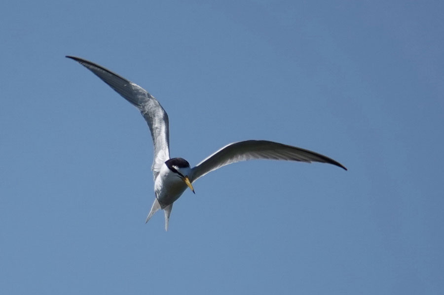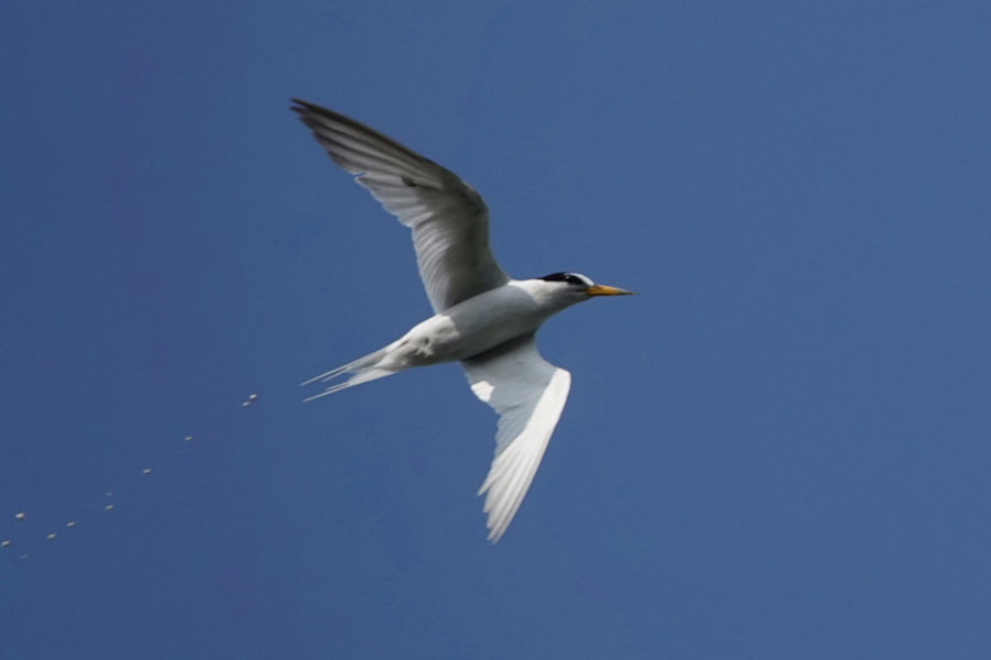 この鳥はコアジサシと言う鳥です。子育て中で頻繁に魚捕りをしていました。
