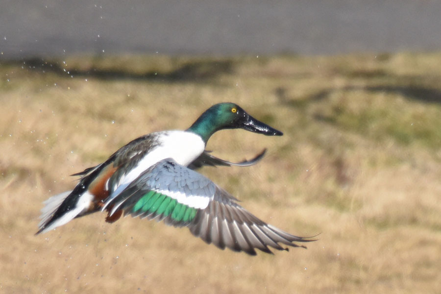 この鳥はカモの仲間でハシビロと言う鳥です。羽根を広げるととても美しい鳥です。