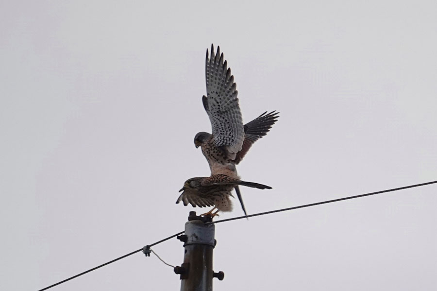 この鳥はチョウゲボーと言う鳥で、交尾をしました。 R2.11.29 矢切にて撮影