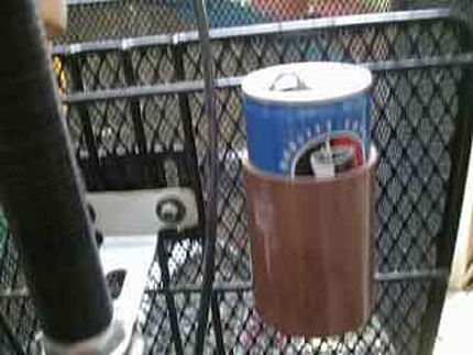 自転車のカゴに空き缶を取り付けたものです。