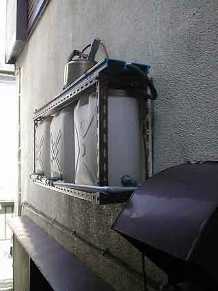 その余った蒸気は完全な蒸留水のため、そのまま捨ててしまうのはもったいない話です。そこでその蒸留水を回収する装置を考えたものです。